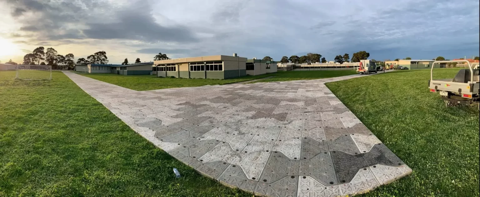 i-Trac® is a premium ground protection system designed for events, stadium builds, and job sites where heavy-duty access is required. These modular polypropylene panels interlock seamlessly to form stable temporary roads, vehicle access lanes, and pedestrian walkways—without damaging the underlying turf or soil.