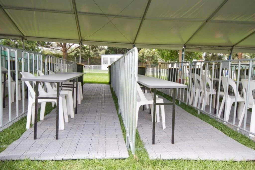 As part of No Fuss Event Hire’s commitment to inclusive event infrastructure, we’re the only company in Australia to offer wheelchair-compliant Supa-Trac and edging systems, ensuring accessible, continuous flooring across any event site. Combined with compatible ramps and smooth transitions, Supa-Trac provides a safe, professional surface for all users — including those with mobility aids.